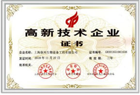 上海保興生物設備工程有限公司成為上海市第一批高新技術企業,并通過ISO9001質量體系認證